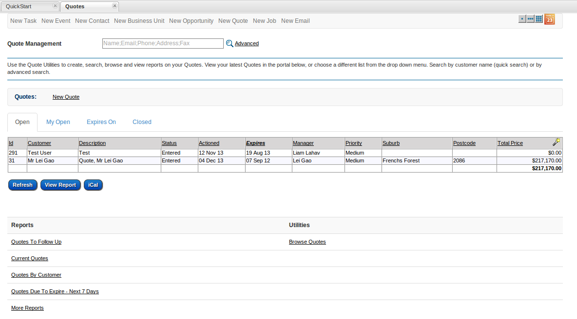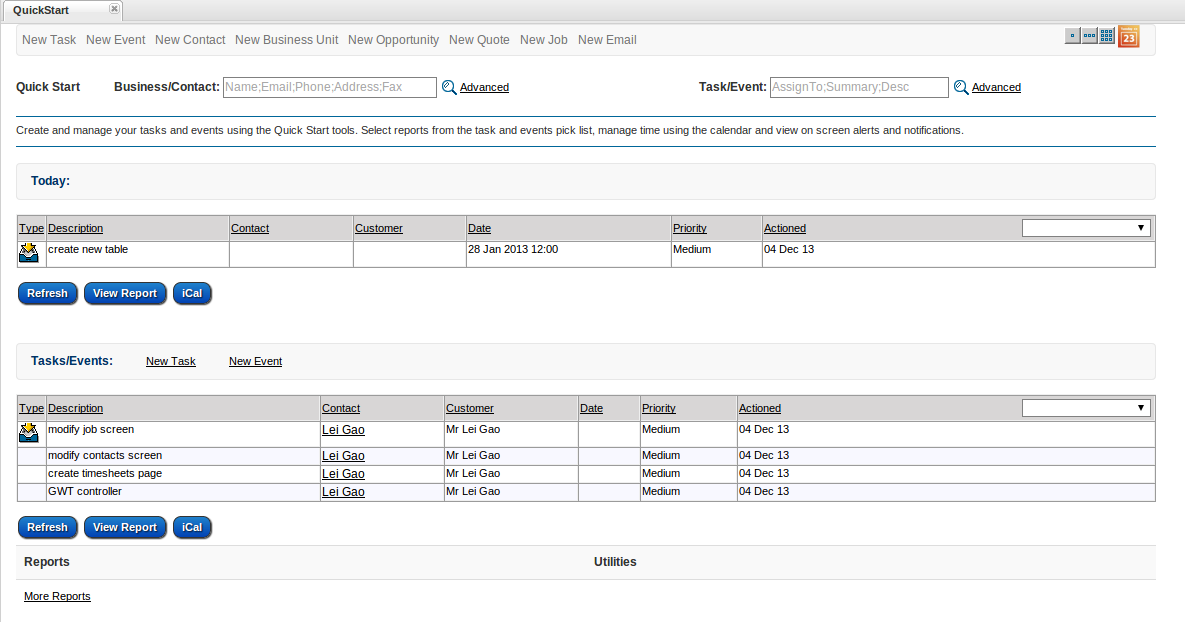 Create new looking pages for QuickStart, Contacts, Business Units, Quotes, Jobs, Financials, Inventory, Purchases, Timesheets and Subscription
